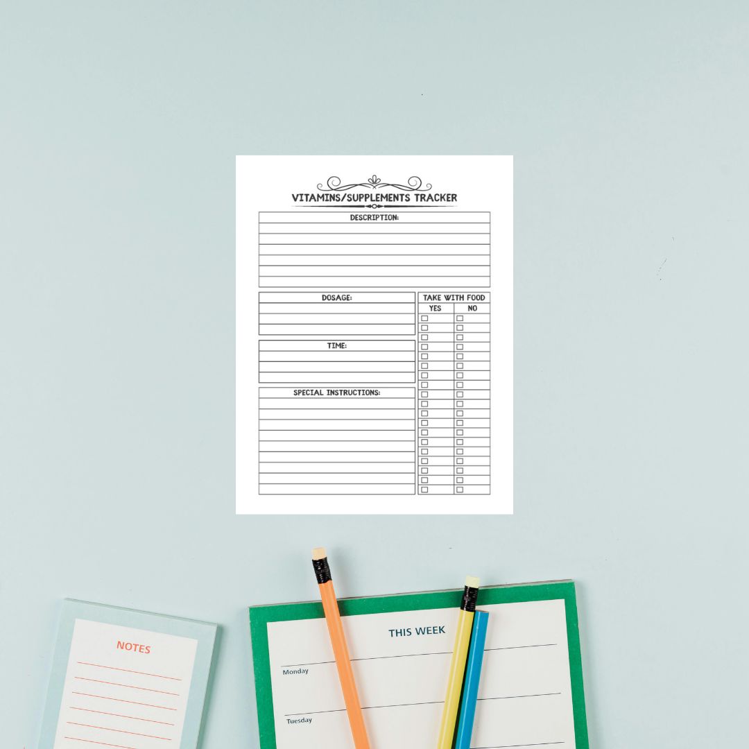 With its minimalist black-and-white design, this printable is ink-friendly and perfect for binders, planners, or health journals. Ideal for anyone working toward health goals, or coordinating routines for themselves or their family.